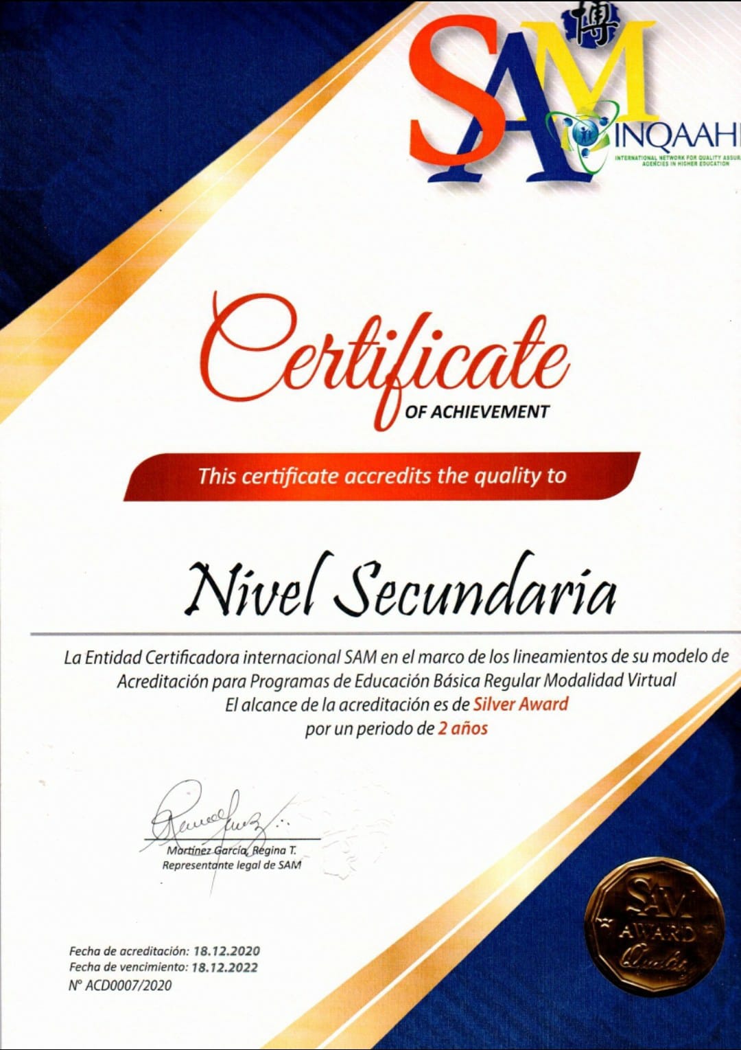 La Acreditación es el acto por el una institución recibe públicamente el reconocimiento luego que una entidad acreditadora estatal o privada hacen la comprobación de que las acciones y procesos que desarrolla la institución están dentro de los estándares de calidad, en sus programas académicos, su organización y funcionamiento y el cumplimiento de su función social, dicho proceso compromete la participación de toda la Comunidad Educativa.