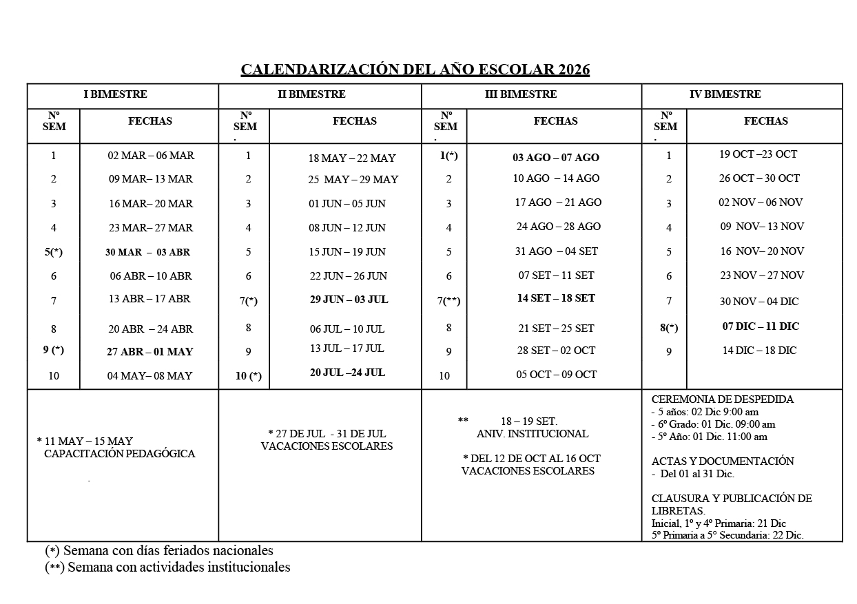 CALENDARIZACIÓN 2026