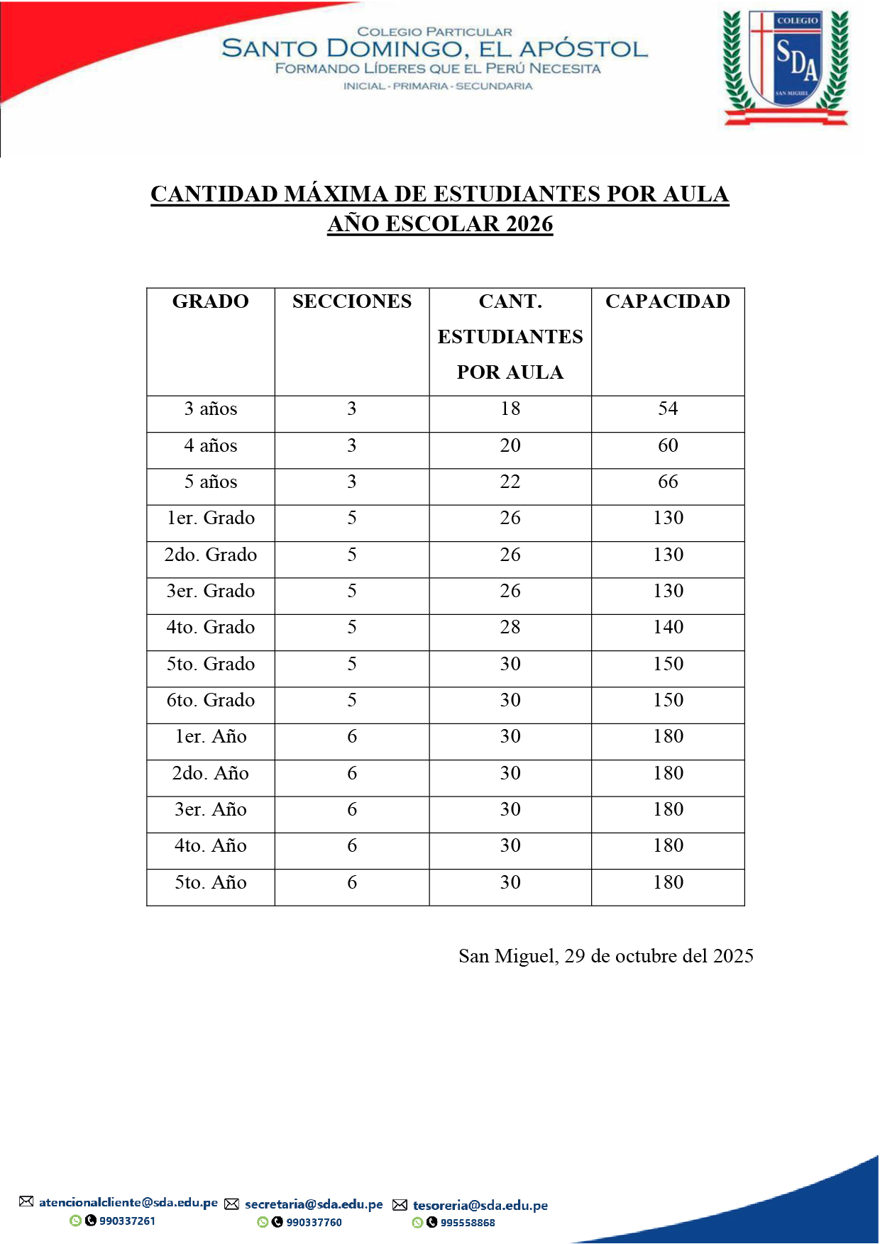 CANTIDAD MAXIMA DE ALUMNOS POR AULA-2026