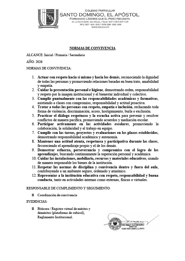 NORMAS DE CONVIVENCIA DOMINGUINA