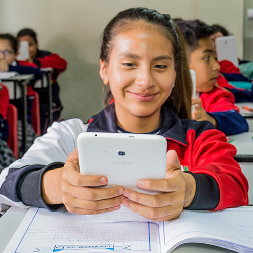 Cada estudiante cuenta con un dispositivo móvil (tablet) y conexión a internet para poder trabajar libros interactivos académicos e investigar y ampliar sus conocimientos de cada uno de los temas. Nuestros estudiantes revisan y editan los contenidos de cada libro, interactúan con videos y enlaces web, ponen en práctica la gamificación (juegos diseñados con fines académicos) y trabajan en conjunto con otras apps especialmente seleccionadas, como diccionarios, formularios y demás herramientas académicas. Los libros interactivos académicos usan la aplicación App Book, especialmente diseñada para el trabajo en línea de los textos escolares bajo la supervisión y guía de los docentes. Estamos capacitados para guiar y potenciar el aprendizaje de nuestros educandos utilizando estas herramientas, contando con aplicaciones especiales para el seguimiento académico dentro y fuera del aula. Los padres de familia cuentan con la aplicación especial, con la cual desde su teléfono móvil pueden monitorear la actividad y los avances de los hijos en su tablet, pero desde cualquier lugar y a cualquier hora.