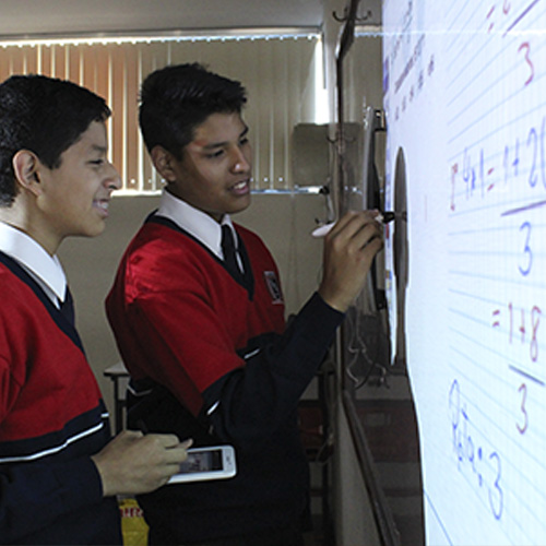 Hacemos uso de nuevas tecnologías para el aula, como las pizarras interactivas, que son recursos tecnológicos que apoyan la práctica docente y potencian las capacidades de enseñanza, además permite a los estudiantes experimentar clases interactivas, colaborativas y con mucho más dinamismo.